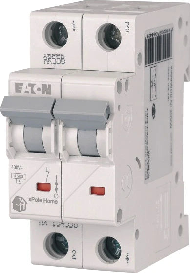 Автоматичний вимикач Eaton серії xPole Home призначений для захисту електромереж змінного струму напругою 220/380В від перевантажень та струмів короткого замикання (КЗ).Пристрої серії xPole Home спеціально розроблені для застосування у житловому будівництві. Висока якість та надійність пристроїв, широка гама аксесуарів, а також простота монтажу роблять пристрої серії xPole Home оптимальним вибором як для споживачів, так і для професійних електриків, які бажають захистити себе, свою родину та будинок від електротехнічних проблем. Функціональні особливості:Високоякісний малогабаритний автоматичний вимикач для комерційного та приватного застосування.Серія: xPole Home (Eaton/Moeller).Сумісні зі стандартними штирковими та вилковими шинами. Підключення шини - довільне (згори чи знизу).Фіксатор для DIN рейки допускає демонтаж з існуючої шинної системи.Номінальна здатність вимикання 4,5 кА згідно IEC / EN 60898-1.Тип: однофазний (2 полюси).Номінальний струм: 10 A.Характеристики спрацьовування: C.