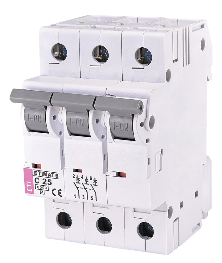Трьохполюсний автоматичний вимикач ETI належить до серії автоматичних вимикачів ETIMAT 6 для захисту електричних ланцюгів змінного струму від перевантаження і короткого замикання. Спеціалізується для застосування в офісних будівлях, торгових центрах, виробництвах невеликого масштабу, житлово-комунальних секторах і приватних будинках.