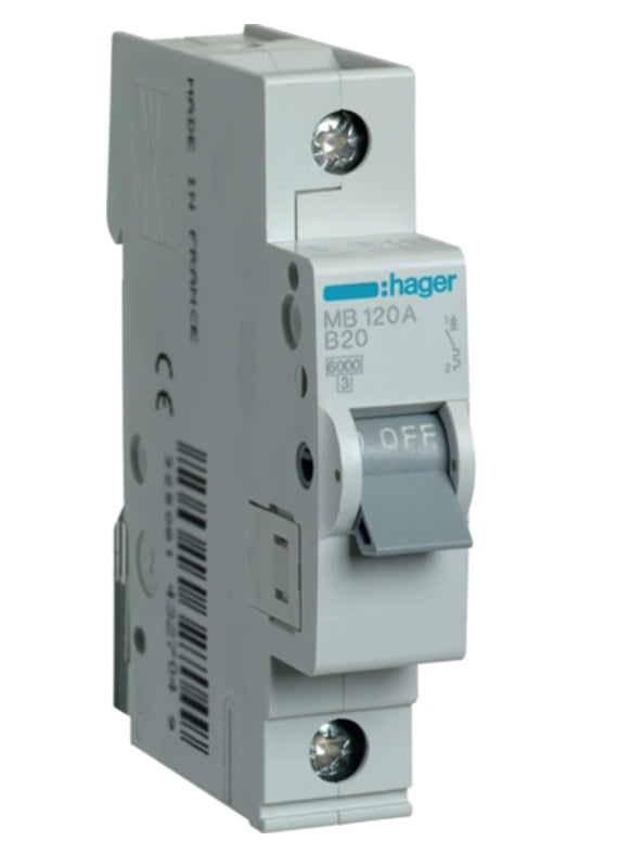 Автоматичний вимикач Hager MB120A (1п, B, 20A, 6кА, 1м)