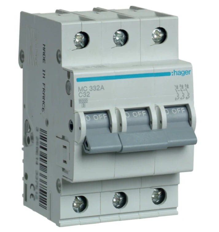 Автоматичний вимикач Hager MC332A (3п, C, 32A, 6кА, 3м)