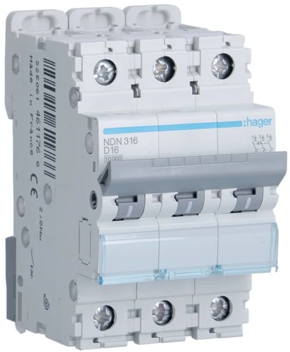 Автоматичний вимикач Hager NDN316 (3п, D, 16А, 10кА, 3м)