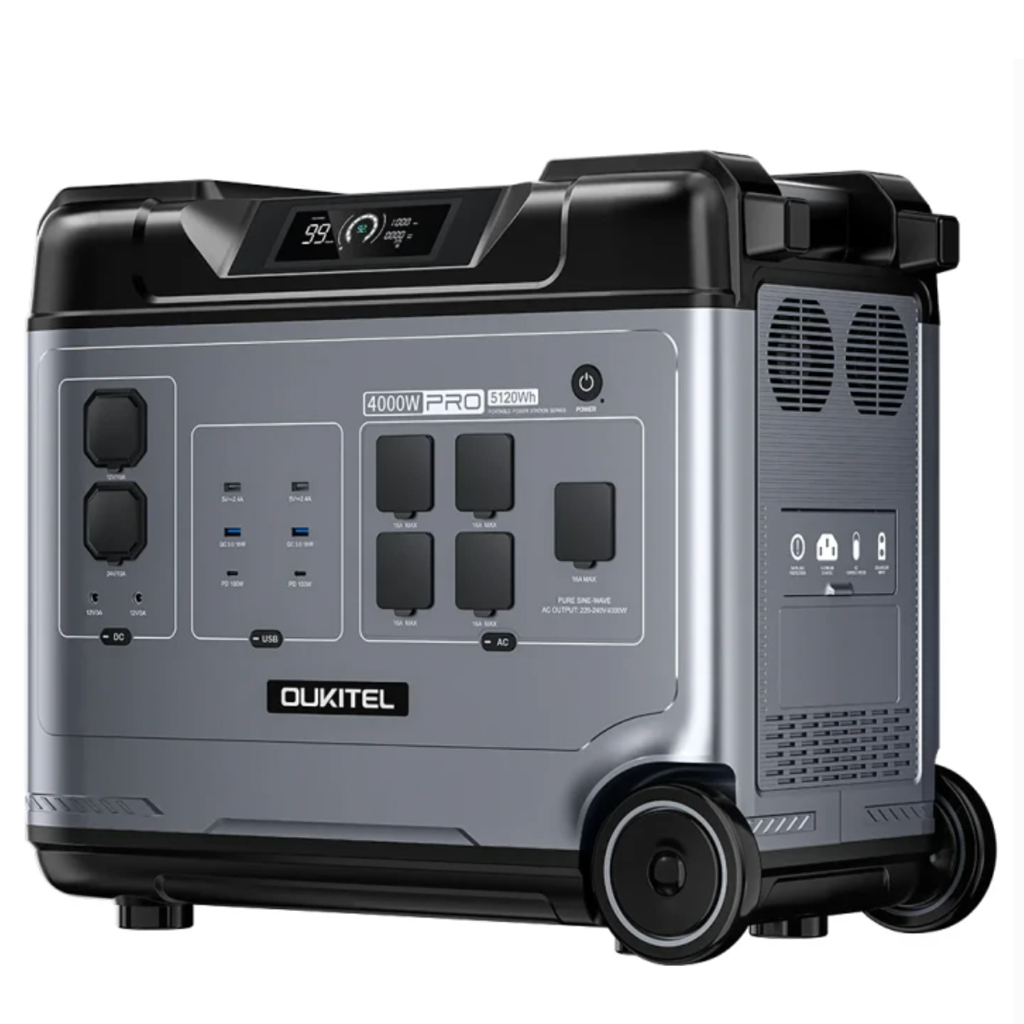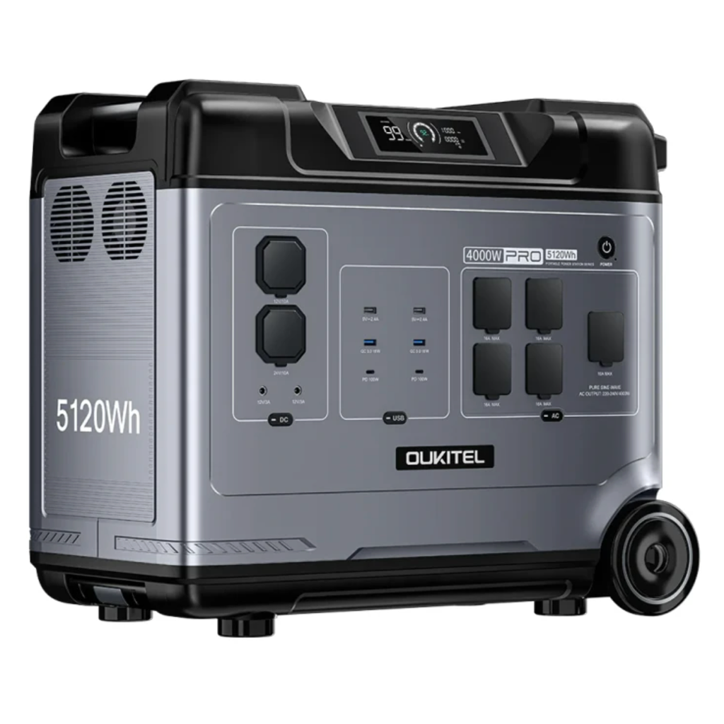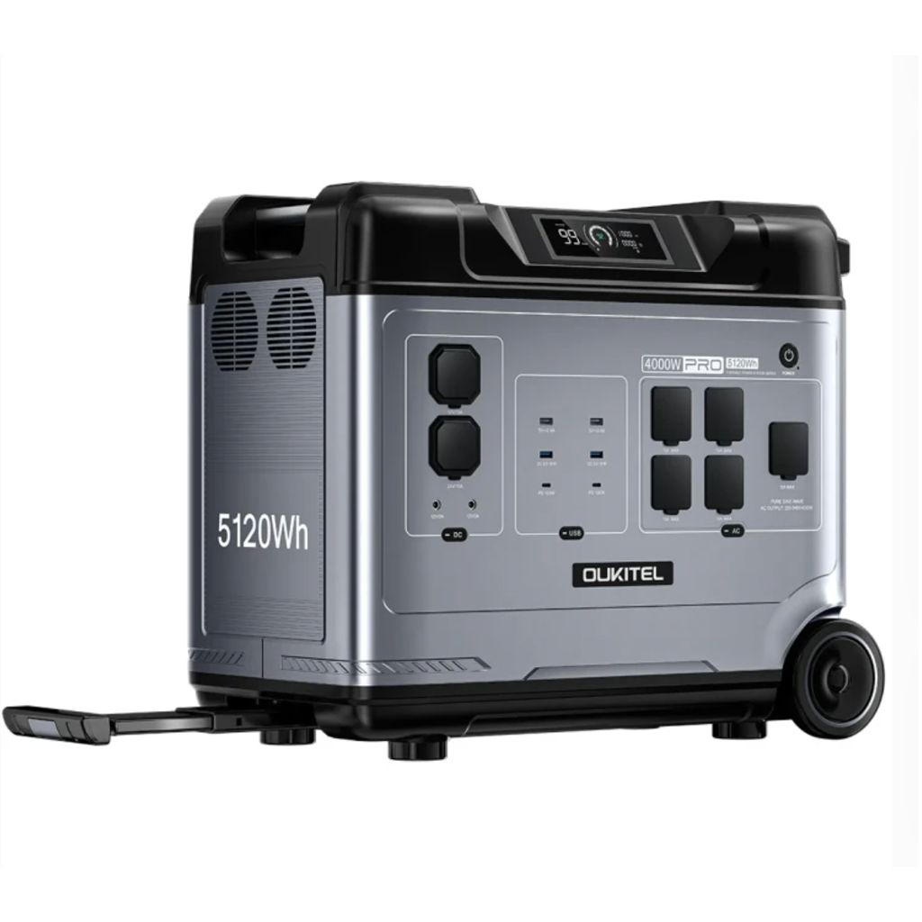 Oukitel P5000E Pro — це потужна та надійна портативна зарядна станція з номінальною потужністю 4000 Вт і місткістю 5120 Вт·год. Вона створена для забезпечення стабільного живлення ваших електронних приладів у будь-яких умовах. Завдяки високій ємності, пристрій здатний живити побутову техніку, електроінструменти і навіть електромобілі.