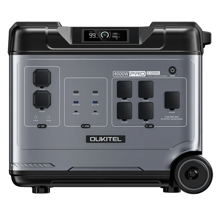 Зарядна станція Oukitel P5000E Pro – це потужний та надійний пристрій з номінальною потужністю 4000 Вт та місткістю 5120 Вт*год призначений для забезпечення енергією ваших електронних приладів у будь-яких умовах. Завдяки високій місткості пристрій може живити побутову техніку, електроінструменти та навіть електромобілі. У поєднанні з подвійним автоматичним перемикачем живлення станція увімкнеться, коли вимкнеться напруга в мережі, забезпечуючи безперебійну роботу домашніх приладів і забезпечуючи вам спокій у надзвичайних ситуаціях.