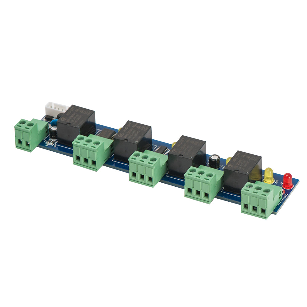 - 1 тривожний вхід для підключення кнопки "Пожежа" та 4 релейних виходу;