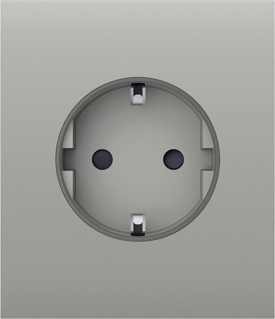 Outlet [type F] basic – це збірний пристрій, що складається із внутрішньої частини OutletCore (basic), прозорої рамки та кольорової передньої панелі з кришкою.
